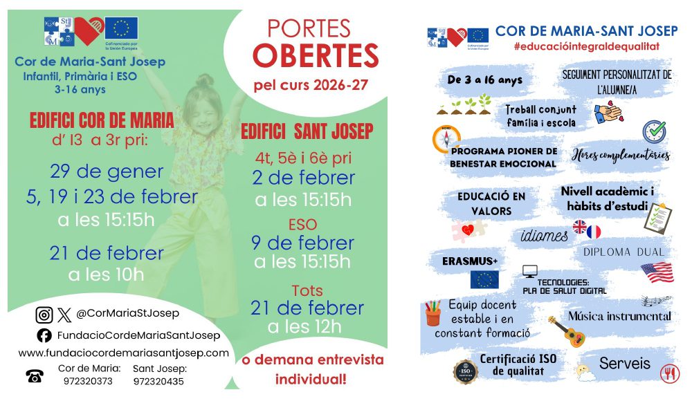 Jornades de portes obertes a les escoles i instituts de la ciutat